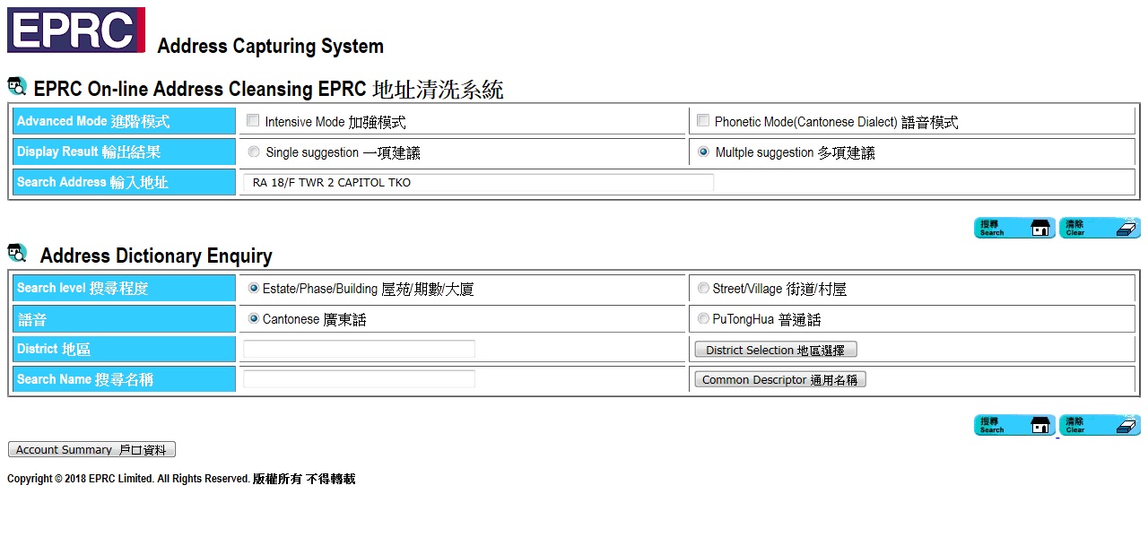 Address Capturing provides 2 major functions including on-line address cleansing and address dictionary enquiry. This tool can be be integrated with your system via API call or directly operated by your front-line staff over the counter.